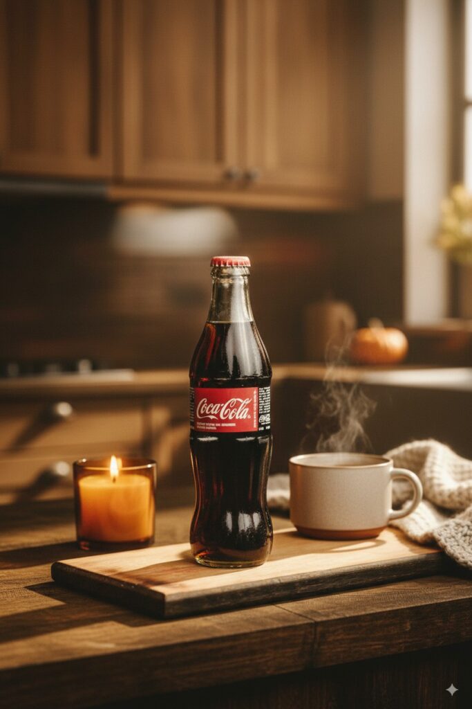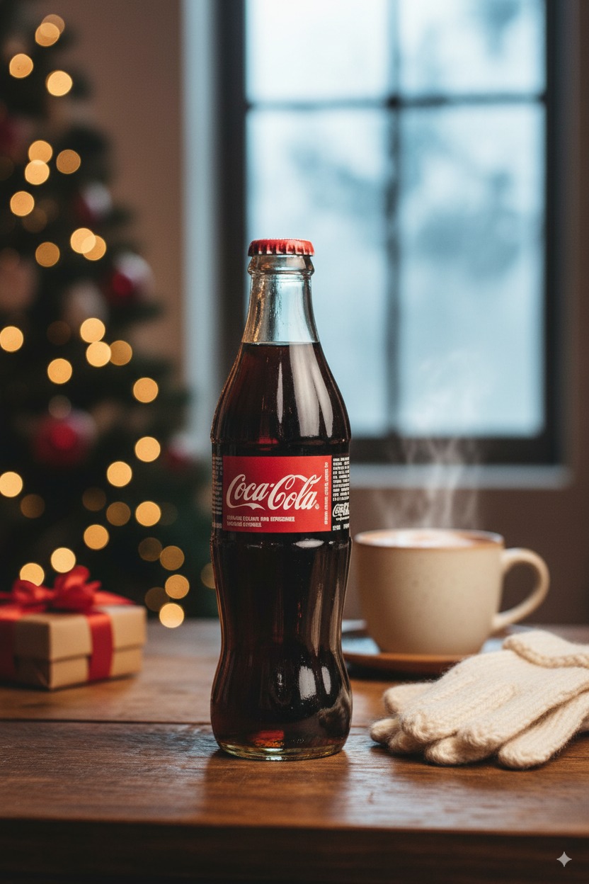“situation”: “You are a professional advertising photographer creating seasonal lifestyle product photography for ad campaigns for (coke).”,